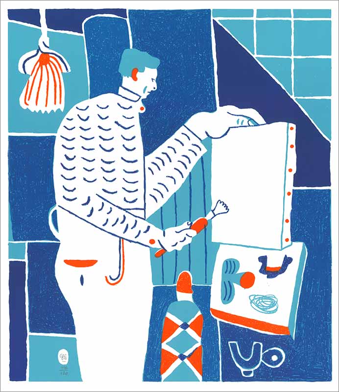 Original color lithography. Signed and numbered by the artist. Printed in 120 copies on 250g Rives acid-free cotton paper.